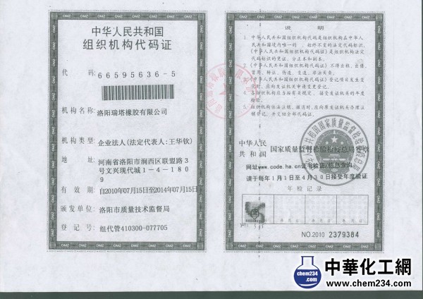 洛阳瑞塔橡胶有限公司-组织机构代码。
