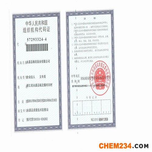 | 发证机构 | 永嘉县监督局 | 发证时间 | 2011-04-20 |
