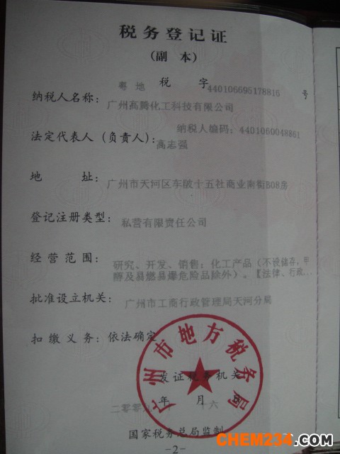 证书介绍 本公司成立以来一直以诚信、务实、高效、双赢的思想经营。产品以质量求生存立足广东珠三角化工市场面向全国化工企业,并与众生产厂家、用户及流通企业结成长期友好合作伙伴。我们是全国多个生产厂家的名牌产品在广东省的指定销售商。在当今竟争激烈的化工市场中我司本着“质量第一,信誉至上”的宗旨,实行质量三包(包退、包换、包送)。我们以化工综合经营为主导,并在各企业的大力支持下业绩蒸蒸日上。我司主营无机化工药剂:水处理、污水处理、漂白、消毒等方面所用化工原材料。其中以:焦亚硫酸钠、消泡剂、工业盐、双氧水、保险粉、洗水软片、漂白粉、草酸、盐酸、氯酸钠、亚氯酸钠、硫化碱、过硫酸钠、次氯酸钠、工业氯化铵、农业氯化铵等产品为主项。 在未来的发展中,广州高腾化工科技有限公司愿与您共搭贸易流通之桥梁,凭借你卓锐的眼光与高腾化工的至诚服务,共创美好前程作努力!