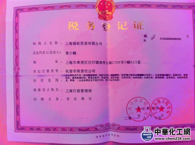 证书介绍 上海德屹将充分利用在国内外的市场资源,与国内有远见卓识的医药及化学品生产企业携手合作,刻意技术的创新,认同质量的崇高,讲究业务的成效,注重市场信息的反馈,商机无限,信息有限,上海德屹走在信息时代的前列,将成为您的合作首选。