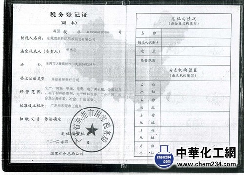 东莞市新科炬机械制造有限公司,国税证。主营产品:超声波振动筛、长方形筛分机、圆形振动筛、白水过滤筛、平台筛分机、低矮筛、袋倾斜筛等