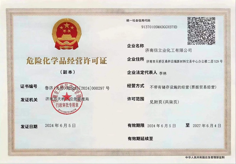 危险化学品经营。(依法须经批准的项目,经相关部门批准后方可开展经营活动,具体经营项目以相关部门批准文件或许可证件为准)