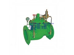 当主阀进出口间压差变化时,接管A与接管B间压差发生变化,此变导阀的开度。压差大时导阀开度大,控制室通过C管的下泄水量增大,主阀控制室压力下降,主阀开度增大,主阀进出口间压差变小。反之,若主阀进出口间压差变小,则导阀开度变小,主阀控制室压力上升,推动主阀开度减小而使主阀压差增大。这种负反馈作用使主阀进出口间压差稳定在社顶值上。设定针阀开度和导阀弹簧压力可设定主阀进出口间压差。本产品利用水力自力控制,不需要其它装置和能源,保养简便,广泛用于高层建筑、生活区等供水管网系统及城市供水工程.