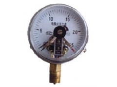 仪表由测量系统(包括接头、膜盒)、传动机构、指示装置、磁助电接头装置、外壳、调节装置及航空扦等组成。当被测介质的压力作用于膜盒时,其自由端产生相应弹性变形—位移,经拔杆带动传动机构放大,由指示装置将被测压力在仪表度盘上指示出来。同时指针带动电接头装置的活动触点与设定指针上的触头(上限或下限)相接触的瞬时,致使控制系统接通或断开电路,以达到自动控制和发信报警的目的。