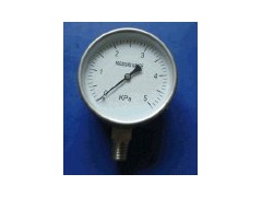 不锈钢膜盒压力表的详细说明1.应用 不锈钢膜盒压力表可测量有腐蚀性的气体或液体的微小压力。 仪表的外壳及导压系统采用1Cr18Ni9不锈钢材料。广泛应用于 石油、化工、冶金等工业部门压力测量。。普通膜盒压力表只能 适用于测量对铜合金不起腐蚀作用,无爆炸危险的微压和负压。 本仪表可以就地安装并现场显示。