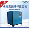 永磁变频空压机的原理是依赖于永磁同步电机稀土,永磁变频空压机的工作原理与电励磁同步电机相同,前者是以永磁体替代励磁绕组进行励磁。当永磁电机的三相定子绕组(各相差120°电角度)通入频率为f的三相交流电后,将产生一个以同步转速推移的旋转磁场。稳态情况下,主极磁场随着旋转磁场同步转动,因此转子转速亦是同步转速,定子旋转磁场恒与永磁体建立的主极磁场保持相对静止,它们之间相互作用并产生电磁转矩,驱动电机旋转并进行 能效转换。永磁变频空压机采用永磁稀土永磁同步电机,螺杆主机与永磁电机共用同一根主轴,电机没有轴承,带有永磁体的转子直接安装在阳转子的伸出轴上。这种结构解决了传统电机轴承,实现电机免维护。永磁变频空气压缩机