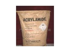 丙烯酰胺是一种不饱和酰胺,别名AM,其单体为无色透明片状结晶,沸点125℃(3325Pa),熔点84~85℃,密度1.122g/cm3。能溶于水、乙醇、乙醚、丙酮、氯仿,不溶于苯及庚烷中,在酸碱环境中可水解成丙烯酸。丙烯酰胺单体在室温下很稳定,但当处于熔点或以上温度、氧化条件以及在紫外线的作用下很容易发生聚合反应。当加热使其溶解时,丙烯酰胺释放出强烈的腐蚀性气体和氮的氧化物类化合物。
