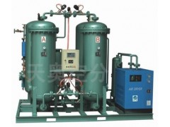 PSA制氧机是根据变压吸附原理,采用高品质的沸石分子筛作为吸附剂,在一定的压力下,从空气中制取氧气。经过纯化干燥的压缩空气,在吸附器中进行加压吸附、减压脱附。由于空气动力学效应,氮在沸石分子筛微孔中扩散速率远大于氧,氮被沸石分子筛优先吸附,氧在气相中被富集起来,形成成品氧气。然后经减压至常压,吸附剂脱附所吸附的氮气等杂质,实现再生。一般在系统中设置两个吸附塔,一塔吸附产氧,另一塔脱附再生,通过PLC程序控制器控制气动阀的启闭,使两塔交替循环,以实现连续生产高品质氧气之目的。
