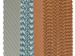 湿膜材料(又称“赛代克”)是湿膜加湿器的核心,它以植物纤维为基材,经过特殊成分的树脂处理烧结形成波纹板状交叉重叠的高分子复合材料,具有极强的吸水性、很好的自我清洗能力、无毒、耐酸碱、耐霉菌、阻燃及提供水分与空气间最大的接触表面积。湿膜的结构能提供空气与其表面之间最大的接触面积,每平方米膜体能提供500~600㎡的接触面积,膜体流道倾角呈45度。