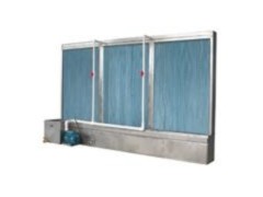 型号:ASMX 类别:湿膜加湿器—循环水湿膜加湿器 品牌:百力拓强 图片及文字介绍仅供参考,请以实物为准. 一、循环水湿膜加湿器系统工作原理 洁净的自来水通过进水管路进入循环水箱中,通过进水开关控制其高水位;当加湿器工作时,循环水泵将水箱中的水输送到加湿器顶部的淋水器,淋水器确保水均匀分配到湿膜材料上,水从湿膜材料顶部向下渗透,同时被湿膜材料吸收,形成均匀的水膜。当干燥的空气通过加湿器时,一部分水与空气接触汽化、蒸发,使空气湿润(即湿度增加);没有蒸发的水从加湿器低部流回循环水箱。循环水箱中的水通过循环水泵反复循环使用,从而使通过湿膜的空气得到加湿。当循环水箱中的水位有所下降时,进水开关开启,给水箱补水,确保水箱的水位维持在设定的高度范围;当循环水箱中的水位下降到一定高度时,水箱内的低水位传感器工作,确保循环水泵在缺水的情况下停止运转。循环水湿膜加湿器结构图当循环水箱内的水循环一定时期后,通过水箱的排水口将水排出,清洗水箱,置换干净的水,保证了循环水和被加湿的空气不被二次污染。 循环水湿膜加湿器结构: 循环水湿膜加湿器的工作特点: 1.洁净加湿-湿膜加湿无“白粉”现象。 2.加湿距离离短—湿膜加湿的汽化距离仅为300-400mm。 3. 饱和效率高—可达90%以上。 4. 节水节能—加湿器的水可以循环使用,节水效果好,整个系统除循环水泵外,无耗能部件。 5. 安全可靠—湿膜材料国外生产,防霉、防菌,寿命可达6-8年;且不会对空调箱产生腐蚀。 循环水湿膜加湿器系统的选型: 1. 加湿器的选型(参见直排水湿膜加湿器) 2. 湿膜主机宽高及循环水箱宽高的选择 1)假设循环水湿膜加湿器系统安装在空调表冷器上:W(湿膜宽度)=换热器宽度, H(湿膜高度)=空调箱内高度。 2)(湿膜高度)=空调箱内高度。 3)循环水箱宽度的选择 { 湿膜厚度 +200mm 当总风量小于 50000 (m3/h ) 湿膜厚度 +300mm 当总风量介于 50000~150000 (m3/h)㎡ 湿膜厚度 +400mm 当总风量大于 150000 (m3/h) 4)循环水箱高度的选择 { 200mm 当总风量小于 50000 (m3/h) 260 mm 当总风量介于 50000~150000 (m3/h) 300 mm 当总风量大于 150000 (m3/h) 循环水湿膜加湿器系统的安装: 1. 进 / 出水管 1)当空调总风量小于 20000(m3/h)时,进出水管采用 DN15供水管 。 2)当空调总风量介于 20000~100000(m3/h)时,进出水管采用 DN20供水管。 3)当空调总风量小于 100000(m3/h)时,进出水管采用 DN25供水管。 2.安装位置 循环水湿膜加湿器系统的技术说明: 1 、湿膜加湿器系统的框架和循环水箱采用不锈钢材料制造。 |
