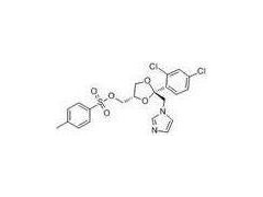 - ·产品介绍:活性酯 (酮康唑中间体) 化学名:顺-[2-(2,4-二氯苯基)-2-(1H-咪唑-1-基甲基)-1,3-二氧戊环-4-基] 甲醇,对甲苯磺酸酯 中文名称:酮康唑活性酯 英文名:ACTIVITY ESTEROF KETOCONAZOL CAS No:134071-44-6 分子式:C21H20N2Cl2O5S 分子量:483.37 质量标准:企业标准 外观 本品为白色或类白色结晶性粉末 含量 ≥98.0% 用途:本品为全合成酮康唑和其他酯类产品的中间体。 包装规格:25公斤/桶,纸桶、内衬二层塑料薄膜。
