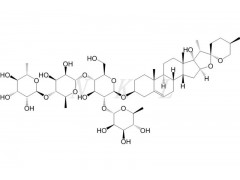 英文别名: (3β,25R)-17-Hydroxyspirost-5-en-3-yl O-6-deoxy-α-L-mannopyranosyl-(1→2)-O-[O-6-deoxy-α-L-mannopyranosyl-(1→4)-6-deoxy-α-L-mannopyranosyl-(1→4)]-β-D-glucopyranoside; Spirostan, β-D-glucopyranoside deriv.; (25R)-17α-Hydroxyspirost-5-en-3β-yl O-α-L-rhamnopyranosyl-(1→2)-O-[O-α-L-rhamnopyranosyl-(1→4)-α-L?rhamnopyranosyl-(1→4)-β-D-glucopyranoside; 17-Hydroxyparis II; Spiro[8H-naphth[2′,1′:4,5]indeno[2,1-b]furan-8,2′-[2H]pyran], β-D-glucopyranoside deriv.;Chonglouoside VII; Dioscinin; Paris VII; Paris saponin VII; Pennogenin 3-O-rhamnosylchacotrioside; Saponin Tg;Pennogenin 3-O-α-L-rhamnopyranosyl-(1→2)-[α-L-rhamnopyranosyl-(1→4)-α-L-rhamnopyranosyl-(1→4)]-β-D-glucopyranoside; Pennogenin 3-O-α-L-rhamnopyranosyl-(1→4)-α-L-rhamnopyranosyl-(1→4)-[α-L-rhamnopyranosyl-(1→2)]-β-D-glucopyranoside;Pennogenin-3-O-α-L-rhamnopyranosyl-(1→4)-O-α-L-rhamnopyranosyl-(1→4)-O-[α-L-rhamnopyranosyl-(1→2)]-O-β-D-glucopyranoside