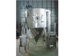 空气经过过滤和加热,进入干燥器顶部空气分配器,热空气呈螺旋状均匀地进入干燥室。料液经塔体顶部的高速离心雾化器,(旋转)喷雾成极细微的雾状液珠,与热空气并流接触,在极短的时间内可干燥为成品。成品连续地由干燥塔底部和旋风分离器中输出,废气由风机排空。