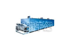 物料由加料器均匀地铺在网带上,网带一般采用12-60目不锈钢丝网,由传动装置拖动在干燥机内移动。干燥机由若干单元组成,每一单元热风独立循环,部分尾气由专门排湿风机排出,废气由调节阀控制,热气由下往上或由上往下穿过铺满物料的网带完成热量与质量传递的进程,带走物料水份。网带缓慢移动,运行速度可根据物料温度自由调节,干燥后的成品连续落入收料器中。上下循环单元根据用户需要可灵活配备,单元数量亦可根据需要选取。
