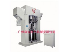 CSH-MX系列五轴行星真空搅拌机工作过程中,两支平行的搅拌桨按设定的固定旋转比例运转,沿搅拌桶公转的同时亦快速自转,同时搅拌桶内有随公转同步运转的回旋刮刀不停旋转,使物料由搅拌桶内壁移动到搅拌桨附近。搅拌器的运转方向与公转可同向亦可逆向,达到不同剪切目的。另两支单独动力装置的高速分散齿盘亦随公转一起沿搅拌桶内运转,进行高效分散,乳化,高速分散齿盘为变频调速,可根据生产工艺自定转速。