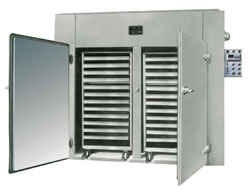 加热热源有蒸气、电、远红外、电蒸气两用; 常用蒸气压力:0.02-0.8MPa(0.2~8kg/cm2); 配用电加热:15kw(按CT-C-I型计算),实用5~8kw/h; 使用温度:蒸气加热50~140℃,最高150℃; 用电、远红外 50~350℃; 备有自控系统和电脑控制系统供用户选择; 本厂出厂烘车、烘盘尺寸统一,可以互换; 使用温度大于140℃或小于60℃,要求订货时注明; 各种特殊要求在订货时表明