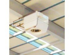高大空间专用空调吊顶在屋顶,通过设备上部混风箱及其内部高效交换器实现对空气的快速加热和混风均匀。利用设备顶部大风压的轴流风机强制热空气下送。从设备下放旋流风口喷射而出,热空气强力冲向地面,使工作区温度快速提升。