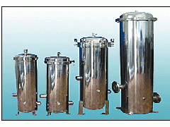 经过前面的石英过滤器、活性炭过滤器之后,原水中大颗粒悬浮物已基本被除去,而一些小颗粒悬浮物则没有被除去。在这里,再进行一次微滤,去除5μm以上的悬浮物,以保护RO膜不被堵塞。同时,一些活性炭细沫也被截留在反渗透系统之外。保安装过滤器进出口设压力指示表,当压差增大到设定值时更换滤芯。
