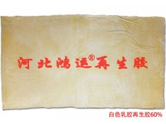 鸿运60%白色乳胶再生胶又称“白再生”,是采用进口废乳胶手套为主要原料,经过破碎、脱硫、消毒、烘干、成型等多道工艺制作而成。它的含胶量为60%、拉伸强度为6.8MPA、扯断伸长率为420%、邵氏硬度为41HD、规格为20kg,具有高弹力、易配色、无须塑炼、开炼工艺简单等特点。
