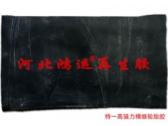 高强力精细再生胶是选用900以上废旧轮胎以聚钙脂和妥尔油为主要脱硫剂,采用德国技术及红外线脱硫工艺生产而成的无味环保再生胶,它的技术指标分为:拉伸强度13.2MPA、扯断伸长率390%、邵氏硬度50HD、规格20kg,根据指标显示它较为适用于生产模压型黑色橡胶制品。