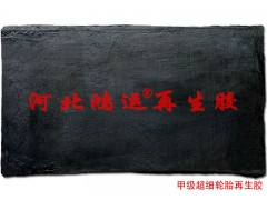 河北鸿运超细再生胶的细度在80目以上、拉伸强度为9.6MPA、扯断伸长率为390%、邵氏硬度为50HD、规格为20kg,其选用900以上的废旧轮胎胶粉为主要原料,通过磁选、脱硫、过滤、精炼成型下片的细离子轮胎再生胶。