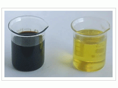 煤焦油脱色除味技术   花都久金机械设备有限公司提供煤焦油、柴油脱色去味技术。采用液体脱色剂脱色去味一次完成。加入脱色剂搅拌沉淀即可,不用白土,不用过虑,处理每吨油成本30—50元。在常温常压下,加剂搅拌30分钟左右,黑色洗油脱色成米黄色,而且煤焦油的刺激臭味也同时被除去,脱除后的颜色,根据煤焦油的不同质量和不同加工工艺,分别可达到红色、黄色、米黄色、浅黄色,接近于国标柴油色度3.5,由于色度下降,同时脱除了硫氮等非烃化合物,其气味、胶质、残炭、硫含量、酸碱度、安定性等多项指标均得到改善。