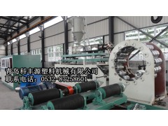 科丰源塑机生产制造塑钢缠绕管设备,设计先进,做工精细。采用高效单螺杆挤出机,配合国外先进变速箱,能耗低,产量高。采用PLC智能控制,稳定可靠,自动化程度高。开发了独特的塑钢复合技术,带材与管材同时生产,一次成型,钢带完全复合在HDPE中,无气泡,不脱落,不受其他介质腐蚀。配置了独立研发的兼容缠绕笼,兼容性强,大口径管道生产速度快,质量稳定,两条生产线即可覆盖DN200-DN3000管径的全系列管道生产。