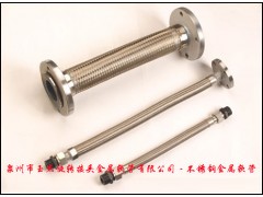 不锈钢金属软管 金属软管整体全部采用1Cr18Ni9Ti不锈钢材料制成,具有很好的防腐蚀能力。软管管体为薄壁不锈钢管二次焊接成型,具有较强的柔韧性,抗振效果好。编织网套的加强保护,使之具有更高的承压能力。软管两端的连接还可以制成除螺纹、法兰标准型之外的其它连接方式。此软管不仅适用于同旋转接头的配套,而且还可以用于其它流体介质输送管道的柔性连接。