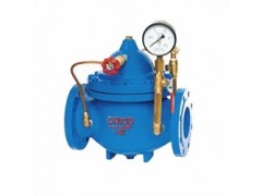 当阀门从进口端给水时,水通过微型过滤器、针阀、单向阀进入主阀控制室,再经过球阀排水至下游。因为针阀开度小于球阀开度,即主阀控制室的排水速度大于进水速度,因此控制室压力降低,作用于主阀盘下端的进口压力打开主阀向下游供水。当管道停止供水时,若下游水开始回流,一部分回流水经球阀进入主控制室,由于单向阀作用,回流水不能从主控制室流出,引起主控制室逐渐升压,缓缓关闭主阀本产品利用水力自力控制,不需要其它装置和能源,保养简便,开启及缓闭平稳。