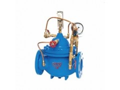 700X水泵控制阀由主阀、电磁导阀、针阀、球阀、单向阀、行程开关、微形过滤器和压力表组成水力控制接管系统。水泵需停止工作时,先由进口压使主阀关闭90%后,水泵停止运转。剩余10%由回水关闭。