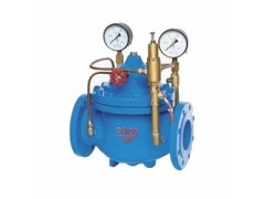 当火灾发生时,消防急需大量用水就,900X紧急关闭阀立即切断生活用水,确保足够的消防用水;当消防停止用水压力减小时,阀门自动打开,呈常开状态,恢复生活供水。其工作原理是,当主阀进口压力低于导阀设定的压力时,导阀此时处于开通状态,主阀上盖腔内压力与主阀出口压力相等,进口与出口存在压差,水流经阀口由出口流出。当消防泵其动,或变频泵压力升高,超过导阀设定压力时,由主阀进口通向导阀控制管压力升高,作用在弹簧上的压力增大,向下压紧,带动阀芯下移,使导阀关闭,此时主阀进口压力通过节流阀不断补充到主阀阀盖上腔,因阀瓣受到的向下的压力大于向上的推力,主阀关闭。值得注意的是,进口压力小于设定压力该阀一直处于开启状态,进口压力大于设定压力,该阀处于关闭状态。
