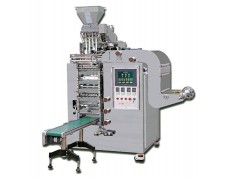列,可自动完成计量、制袋、填充、封合、切断、打印生产日期、切易撕口等工序;适用于包装医药、食品、农业、日化等行业中的松散状无粘性粉状颗粒物料。如:咖喱粉、鸡精、汤料、洗衣粉、小丸、白糖、麦片、种子、感冒冲剂、干燥剂