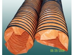 实验室通风管由塑料胶骨包裹钢线为骨架,以橙色塑料夹网布为管身,两头管口处串有绳子可方便套接风口,管身处每隔1米有一金属吊扣方便固定风管。产品伸缩弯转、驳接自由、体积轻巧、携带方便、耐高温、防静电、耐酸碱且阻燃、绝缘。配合通风设备广泛应用于木工机械的抽排木屑及机房、地下室;隧道、市政下水道工程、地下电缆工程,造船工程等处的送风及排气之用。更是手提式风机的必备之选!