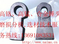 破碎机改进型合金锤头,它是一种粉碎机上的工作零部件,该锤头的主要特征是在工作部位嵌入若干块钢结合金,从而大大提高了锤头的耐磨性,合金与锤头是一次铸造成型.本实用新型嵌入若干块合金后,锤头使用寿命比原产品提高五倍以上.粉碎效率提高30%以上,该锤头广泛用于水泥厂石灰石、熟料,砖厂页岩、煤矸石、焦炭,冶金,玻璃、煤炭,矿山矿石多种破碎行业!