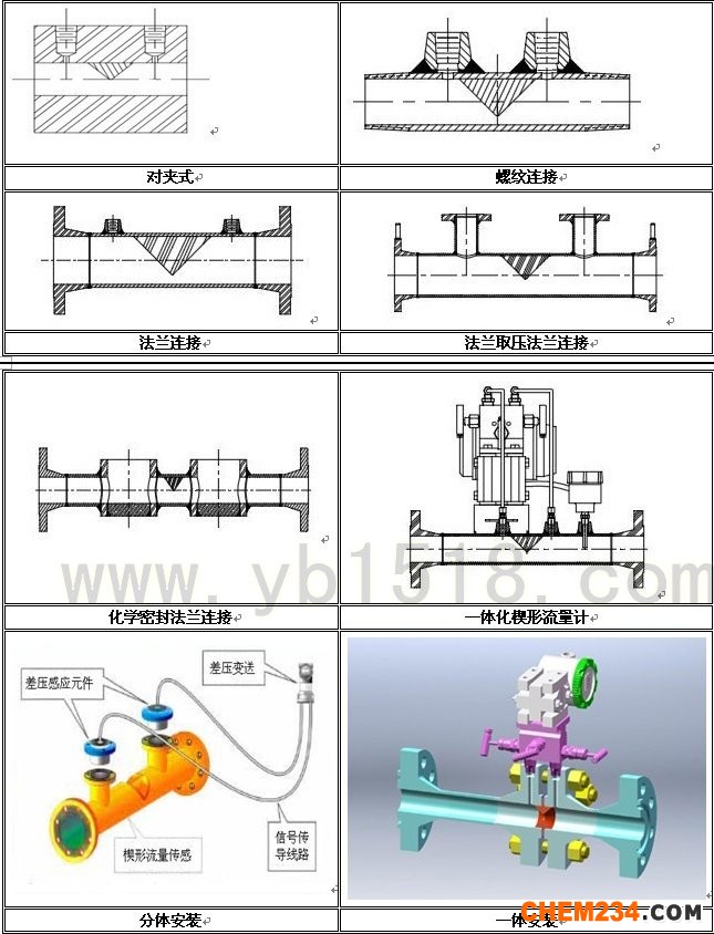 GD-LGX楔形流量计按其组装方式分为一体型和分离型,按其连接方式分为法兰连接、焊接连接、螺纹连接及对夹式连接,按其取压方式分为普通取压、法兰密封取压等结构。详见下表: