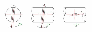 其他类型的传感器是将其检测杆插入工艺管道中,安装时除了总压孔应正对流速方向外,必须保证传感器检测杆与工艺管道的轴线垂直,其允许的位置角压偏差如图五所示。