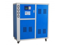 水冷式箱型设计制冷效果相对风冷式设计较好,高能效,低噪音,安全可靠 ;底部装有活动脚轮,外形美观,可安放于生产车间内,并具备多级能量调节适用于配套中小型生产设备但需要外置冷却水把热量带走,安装相对麻烦点。水箱内置于机组内,(此机型需要安装配备相应的冷却水塔、管道泵)。