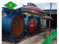 加气混凝土蒸压釜为钢制卧式筒型装置,釜盖采用整块16M nR钢板压制而成,釜盖法兰、釜体法兰采用16M n整体锻造加工而成。加气混凝土蒸压釜受压部件焊缝均按相关标准进行了热处理和严格的无损检测。最高设计压力可达到1.65mpa 。