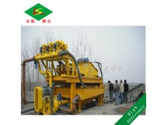 巩义市宋陵腾达机械厂的尾矿脱水机是我公司生产的多功能尾矿脱水机,对于各种煤泥,尾矿以及精矿浆的脱水有着很成熟的经验,目前国内的脱水设备大致分为四类:压滤机,陶瓷过滤机,离心机,和振动筛网,比较而言,陶瓷过滤机,压滤机、离心机都有占地面积大,使用成本高,易堵塞难清洗的缺点,振动筛网由于设计的原因脱水效果比较差。本系统采用旋流器预脱水,振动筛再脱水的技术,具有体积小,效率高,易操作,易维护等特点。经絮凝处理后的微颗粒,经浓缩导流装置进入带式压榨过滤机,在重力作用下自由水与絮团分离,脱除滤浆中大部分自由水,再经过数个S型排列压榨辊对滤饼压榨,滤饼脱去大部分胞间水,滤饼排至输传送带输送到指定地点进行干堆或矿车运输,尾矿或精矿浆分离出来的水可通过柔性橡胶管排放至回用水系统,煤泥分离出来的水可通过柔性橡胶管排放至另一水仓或附近水沟。