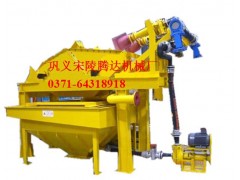 巩义市宋陵腾达机械厂专业生产-选矿设备尾矿脱水机,球磨机,陶瓷球磨机,破碎机,反击式破碎机,磁选机,浮选机拥有专业的技术研发团队,提供全方位的选矿技术服务及解决方案!欢迎广大客户来厂参观考察洽谈合作!巩义市宋陵腾达机械厂生产的多功能尾矿脱水机,对于各种煤泥,尾矿以及精矿浆的脱水有着很成熟的经验,目前国内的脱水设备大致分为四类:压滤机,陶瓷过滤机,离心机,和振动筛网,比较而言,陶瓷过滤机,压滤机、离心机都有占地面积大,使用成本高,易堵塞难清洗的缺点,振动筛网由于设计的原因脱水效果比较差。本系统采用旋流器预脱水,振动筛再脱水的技术,具有体积小,效率高,易操作,易维护等特点。经絮凝处理后的微颗粒,经浓缩导流装置进入带式压榨过滤机,在重力作用下自由水与絮团分离,脱除滤浆中大部分自由水,再经过数个S型排列压榨辊对滤饼压榨,滤饼脱去大部分胞间水,滤饼排至输传送带输送到指定地点进行干堆或矿车运输,尾矿或精矿浆分离出来的水可通过柔性橡胶管排放至回用水系统,煤泥分离出来的水可通过柔性橡胶管排放至另一水仓或附近水沟。,