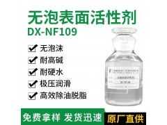 无泡表面活性剂DX-NF109是一种以天然产物为基础的新型烷基羧酸皂类化合物。不含氮和磷,具有无泡、脱脂力强、耐强碱、配伍性佳的特点。尤其适用于喷淋清洗,具有高效除油和无泡沫累积的特点。