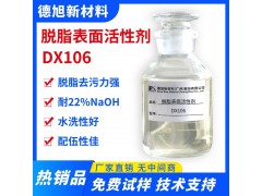 脱脂表面活性剂DX106是一款新型复合型表面活性剂,具有高效脱脂、耐强碱、无磷无氮、水洗性好、配伍性佳等特点。常用于冲压油、拉伸油、厨房重油污、挡风玻璃、衣物重油污、高分子胶的清洗。