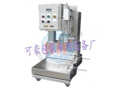 详细信息 KH-30TBD防爆灌装机个性设计一人操作(可加装滚筒缓冲区和压盖装置),灌装高度可调、适合圆、方、扁、各种罐型及口径高粘度液体灌装;一体机型、移动方便、一机多用;二速灌装“快又准”(精确度在±10g) 稳定性好,能为贵公司带来:灌装速度的提高、重量质量稳定及带来企业信誉好、减少损耗节省成本、减轻工人压力、产能提高。 应用范围:涂料,油漆,油墨,粘合剂,胶粘剂,天那水,化工溶剂,浠释剂,树脂,润滑油及各种可流动液体 主要功能: ■ 数字输入设定目标重量,操作简单灌装速度快,计量精确 ■ 自动检测到有桶而启动灌装和程序,有效防止无桶灌装的误动作 ■ 自动对桶口、撞桶保护、皮重过轻过重的保护 ■ 采用大、小两段给料灌装方式,提高定量准确度 ■ 开机自动清零,运行中各种工作状态显示,紧急停止和断电自动复位保护 ■ 一机多用,灌装高度和秤台上料桶定位装置均可调,,适合不同高度的方圆扁各种桶型 ■ 可选配电脑连线或实时打印灌装日期、序号、净重、皮重、累计重量等灌装参数 ■灵活移动,防爆配置,操作简单 ■ 机械部份材质采用SUS316或SUS304不锈钢,适用于食品类和高腐蚀类的液体人性化设计,拆装维护清洗方便 ■ 电控部份采用等级EXDII4的防爆控制箱,内部配置可编程控制器( PLC),和高性能的控制表头,从而通过完美配合达到定量准、误差小、操作间单的理想效果 技术参数: 型号 KH-30TBD 灌装范围 ≤30kg(30L) 秤重感量 0.005kg 灌装能力 5-8桶/分(以15kg/桶的水为灌装标准) 计量精度 ±10g 工作环境 温度:-10-40℃ 湿度:≦90% 使用电压 AC 220V 单相 电源功率 0.5KW 使用气压 4-8kg/c㎡ 外型尺寸 500700x1150mm(长x宽x高) 设备重量 约70kg 备注 灌装能力会因物料特性或供料压力有所不同 |
