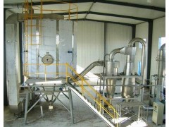 该机采用全封闭形式,所有部件均采用不锈钢制造,配有三级净化装置,过滤后的空气达十万级要求。筒体与顶部装有冷壁装置,使壁温<80℃,干燥塔内装有气刷扫塔装置。经该机干燥后的中药浸膏粉,不会出现焦化变质现象,大大增加了收粉率(95%以上),而且不会产生混药现象和粘壁现象。
