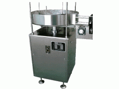 该理瓶机是由人工将瓶子放入圆形转盘上,转盘转动将瓶子有续拨入输送带,进入灌装机进行灌装。使用方便,操作简单是不可缺少的一个环节。