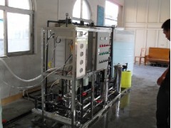 阳泉去离子水设备采用反渗透过滤技术,反渗透RO技术是当今先进和有效的除盐技术。其原理是在压力的作用下,水分子透过反渗透膜成为纯水,水中的杂质被反渗透膜截留排出。利 用反渗透技术可以有效地去除水中的溶解盐、胶体、细菌、病毒、细菌内毒素和大部分有机物等杂质。反渗透设备系统除盐率一般为97-99%。一级反渗透设备 出水电阻率一般在 0.05-0.5mω/cm之间。用双级反渗透设备除盐的技术称为两级反渗透技术,两级反渗透装置可除去原水中99%以上的盐分。不同的化工产品要求水质 也不一样,可以根据具体水质要求而定制.