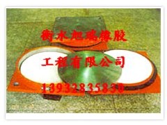 QZ球形橡胶支座主要由上支座板、下支座板、球形板、聚四氟乙烯滑板(即平面四氟板、球面四氟板)及橡胶挡圈组成一种橡胶支座产品。它只是将盆式支座中的橡胶板改为球面四氟板;中间钢板及底盆亦相应地改成球面,减小了摩擦系数。其位移由上支座板与平面四氟板之间的滑动来实现。在上支座板上设置导向槽或导向环来约束支座的单向或多向位移,可以制成球形单向活动支座和固定支座。通过球形板和球面四氟板之间的滑动来满足支座转角的需要。