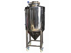 啤酒发酵罐罐体为圆柱形,顶盖为碟形,底盖为采用60°~90°倾斜度的锥形有利于罐中酒液对流强烈,发酵速度快,而且利于排放酵母和发酵罐中杂质;在酒精发酵过程中,为了回收CO2气体及其所带出的部分酒精,发酵罐宜采用密闭式。罐底部有手孔、与罐顶连接的CO2、空气、CIP等的进出管、内容物容积测量装置、空罐探头及保压装置等。