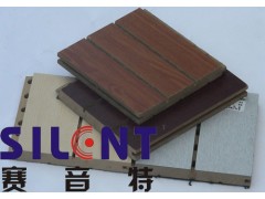 “赛音特”木质装饰吸音板是根据声学原理精致加工而成,由饰面、芯材和吸音薄毡组成。芯材为进口MDF板材,芯材的正面贴有饰面,背面粘贴黑色吸音薄毡。根据客户的要求,饰面有各种实木贴面、进口烤漆面、油漆面和其它饰面,既有木材本身的装潢效果,又有良好的吸音性能。与其它吸音板相比有独到之处,是当今国内外首选使用的装饰吸音板。