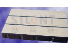 基材: 专利技术生产的无机材料,以高岭土、硅灰石、硅藻土、膨胀珍珠岩等为主要原料,导电瓷土粉、导电粉等为导电材料,增强纤维(无纺布)的产品增加材料,经搅拦、挤压成型的经化合反应而成的一种高强度材料,具有防火、防静电、防水、防潮、防蛀、防霉、抗菌特性。其吸声原理一是材料本身内形成多孔结构,具有很好的吸音效果,其二是成品板上通过开槽、钻孔等形成狭缝形成共振结构,进一步强化吸声效果。
